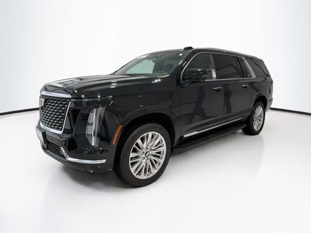 Certified. CARFAX One-Owner. Black Raven 2025 Cadillac Escalade ESV Premium 4WD 10-Speed Automatic 6.2L V8 Escalade ESV Premium, 4D Sport Utility, 6.2L V8, 10-Speed Automatic, 4WD, Black Raven, Black Leather, 2-Presets Memory For Driver Seat Adjuster, 2-Speed Active Transfer Case, 3rd row seats: split-bench, 4-Way Power Driver Lumbar Seat Adjuster, 4-Way Power Front Passenger Lumbar Seat Adjuster, 8-Way Power Driver Seat Adjuster, 8-Way Power Front Passenger Seat Adjuster, AKG Studio 19-Speaker Audio System, Apple CarPlay/Android Auto, Blind Zone Steering Assist with Trailering, Door Lock and Latch Shields, Electronic Limited-Slip Differential, Exterior Parking Camera Rear, Front dual zone A/C, Glass Breakage Sensor, Heads-Up Display, Heated and Ventilated Driver and Front Passenger Seats, Heated Driver and Front Passenger Seats, Heated front seats, Heated steering wheel, Hitch Guidance with Hitch View, Illuminating Front and Rear Sill Plates, Integrated Trailer Brake Controller, Magnetic Ride Control Suspension, Navigation System, Power Liftgate, Power moonroof, Power Panoramic Tilt-Sliding Sunroof, Preferred Equipment Group 1SB, Reconfigurable Full-Color Head-Up Display, Running Board Assist Steps, Smart Trailer Integration Indicator, Theft-Deterrent Alarm System, Trailering App, Trailering Assist Guidelines, Vehicle Inclination Sensor, Vehicle Interior Movement Sensor, Ventilated front seats, Wheel Locks, Wheels: 22 9-Spoke Alloy with Polished Finish.