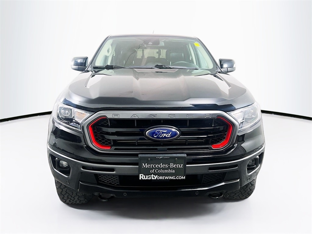 CARFAX One-Owner. Shadow Black 2022 Ford Ranger Lariat 4WD 10-Speed Automatic EcoBoost 2.3L I4 GTDi DOHC Turbocharged VCT Back Up Camera, Leather, Heated Seats, Ranger Lariat, 4D Crew Cab, EcoBoost 2.3L I4 GTDi DOHC Turbocharged VCT, 10-Speed Automatic, 4WD, Shadow Black, Ebony w/Front Miko Suede-Trimmed Bucket Seats, 2 4.2 Colored Productivity Screens, Adaptive Cruise Control, Black Interior Accents, Black Off-Road Hoop Steps, Blk Mesh Grille w/Magnetic Pntd Surround/Blk Bars, Class IV Trailer Hitch Receiver, Electronic-Locking Rear Differential, Equipment Group 501A High, Exterior Parking Camera Rear, Forward Sensing System, Fr Lthr-Trimmed Bucket Seats w/Miko Suede Inserts, Front dual zone A/C, Heated front seats, Magnetic Painted Fender Vent Surround, Magnetic Painted Front & Rear Bumper, Magnetic Painted Wheel Arch Flare, Navigation, Off-Road Screen in Cluster, Off-Road Tuned Suspension w/FOX Dampers, Radio: B&O Sound System by Bang & Olufsen, Rain-Sensing Wipers, Rear Tow Hooks, Remote Start, SYNC 3, SYNC 3/Apple CarPlay/Android Auto, Technology Package, Terrain Management System, Trail Control, Trailer Tow Package, Tray Style Floor Liner w/Carpet Floor Mats, Tremor Box Decal, Tremor Off-Road Package, Universal Garage Door Opener (UGDO), Upfitter Switches (6), Wheels: 17" Magnetic Painted Aluminum.
