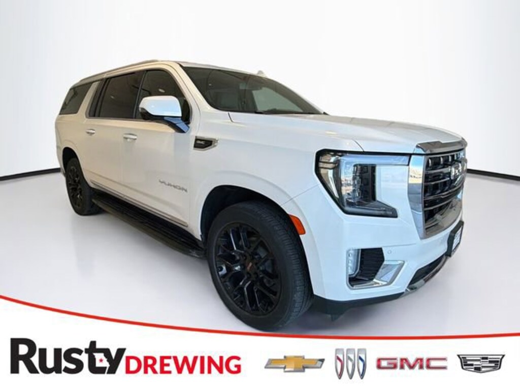 Certified. CARFAX One-Owner. White Frost Tricoat 2022 GMC Yukon XL SLT 4WD 10-Speed Automatic with Overdrive EcoTec3 5.3L V8 Yukon XL SLT, 4D Sport Utility, EcoTec3 5.3L V8, 10-Speed Automatic with Overdrive, 4WD, White Frost Tricoat, Dark Walnut/Slate Leather, 2 Presets For Outside Rearview Mirrors, 2 Presets For Power Driver Seat, 3rd Row 60/40 Power-Folding Split-Bench Seat, 3rd row seats: split-bench, Apple CarPlay/Android Auto, Automatic Stop/Start, Bose 9-Speaker Stereo Audio System Feature, Bright Chrome Bodyside Moldings, Bright Front & Rear Door Sill Plates, Chrome Door Handles w/Body-Color Strip, Dual-Pane Panoramic Power Sunroof, Front & Rear Park Assist, Hands-Free Power Programmable Rear Liftgate, HD Surround Vision, Heated & Ventilated Driver & Front Passenger Seats, Heated 2nd Row Outboard Position Seats, Heated Driver & Front Passenger Seats, Heated front seats, Heated Steering Wheel, Inside Rear-View Auto-Dimming Mirror, License Plate Front Mounting Package, Max Trailering Package, Navigation System, Outside Heated Power-Adjustable Mirrors, Power Liftgate, Power Release 2nd Row 60/40 Split-Folding Bench Seat, Power Tilt & Telescopic Steering Column, Preferred Equipment Group 4SA, Premium Smooth Ride Suspension, Rear Pedestrian Alert, Safety Alert Seat, SLT Luxury Package, Speed control, Start/Stop System Disable Button, Universal Home Remote, Ventilated front seats, Wireless Charging.