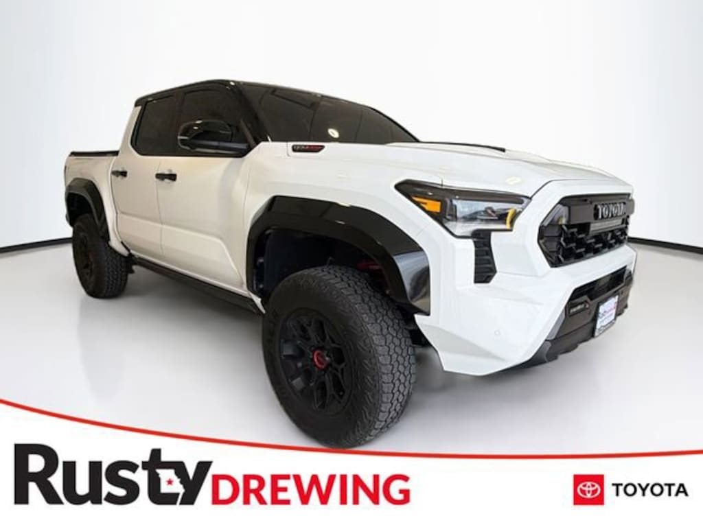 Certified. Ice 2024 Toyota Tacoma Hybrid TRD Pro 4WD 8-Speed Automatic 2.4L I4 PDI Hybrid Turbocharged DOHC 16V Tacoma Hybrid TRD Pro, 4D Crew Cab, 2.4L I4 PDI Hybrid Turbocharged DOHC 16V, 8-Speed Automatic, 4WD, Ice, Black Artificial Leather, Apple CarPlay/Android Auto, Bed Scene Lighting (TMS), Exterior Parking Camera Rear, Front dual zone A/C, Heated front seats, Heated steering wheel, Htd & Vent TRD Pro IsoDynamic Performance Seats, JBL Premium Audio, Navigation system: Drive Connect (1 year trial) includes Cloud Navigation with real time traffic and Google POI, Power moonroof, Speed control, Spray-On Bed Liner (TMS), TRD Pro Package, Ventilated front seats, Wheels: 18" Black TRD Pro Alloy.
