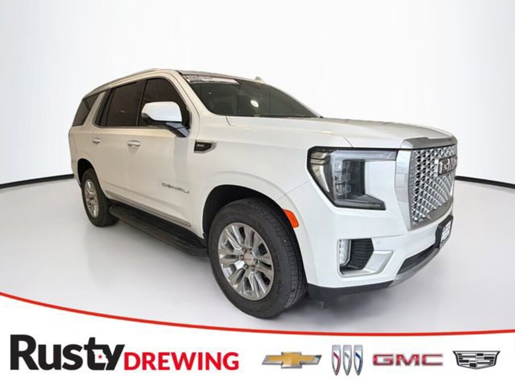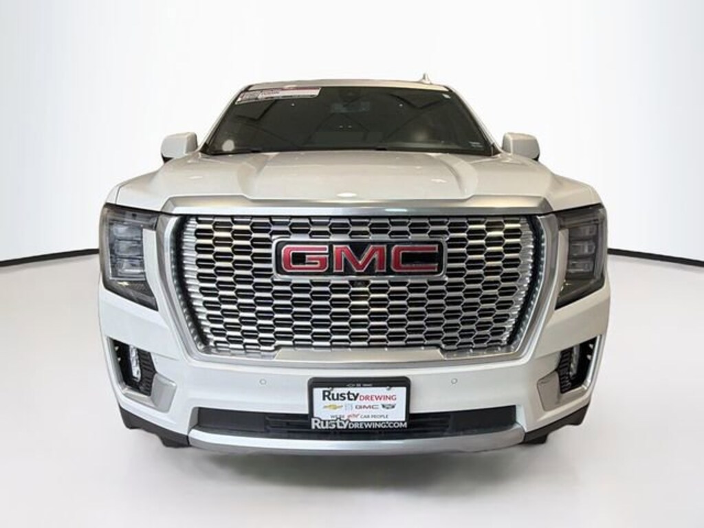 Certified. White Frost Tricoat 2022 GMC Yukon Denali 4WD 10-Speed Automatic with Overdrive EcoTec3 6.2L V8 Yukon Denali, 4D Sport Utility, EcoTec3 6.2L V8, 10-Speed Automatic with Overdrive, 4WD, White Frost Tricoat, Jet Black Leather, 15 Diagonal Multi-Color Head-Up Display, 2 Presets For Outside Rearview Mirrors, 3 Years of GMC Connected Services, 3rd Row 60/40 Power-Folding Split-Bench Seat, Apple CarPlay/Android Auto, Auto-leveling suspension, Automatic Stop/Start, Bose 14-Speaker Surround w/CenterPoint, Bright Front & Rear Door Sill Plates, Chrome Door Handles w/Body-Color Strip, Dual Exhaust System, Dual-Pane Panoramic Power Sunroof, Floor Console, Front dual zone A/C, Galvano Bodyside Moldings, Hands-Free Power Programmable Rear Liftgate, HD Surround Vision, Heads-Up Display, Heated & Ventilated Driver & Front Passenger Seats, Heated 2nd Row Outboard Position Seats, Heated Driver & Front Passenger Seats, Heated front seats, Heated Steering Wheel, Heated steering wheel, Hill Descent Control, Inside Rear-View Auto-Dimming Mirror, IntelliBeam Automatic High Beam On/Off, Lane Change Alert w/Side Blind Zone Alert, Lane Keep Assist w/Lane Departure Warning, License Plate Front Mounting Package, Magnetic Ride Control Suspension, Navigation System, Outside Heated Power-Adjustable Mirrors, Power Liftgate, Power Release 2nd Row Bucket Seats, Power Tilt & Telescopic Steering Column, Preferred Equipment Group 5SA, Rear Pedestrian Alert, Roof rack: rails only, Safety Alert Seat, Speed control, Start/Stop System Disable Button, Universal Home Remote, Wheels: 20 x 9 6-Spoke Polished Aluminum, Wireless Charging.Certification Program Details: CarBravo CertifiedWelcome to Rusty Drewing Automotive. As your mid-Missouri locally and family owned dealer, excellent customer service is always our #1 priority. Whether you're from Jefferson City or Columbia, MO, from start to finish, we'll make sure your visit to Rusty Drewing Automotive is the best car-buying experience.