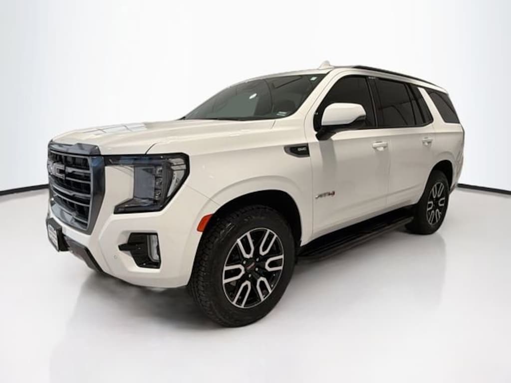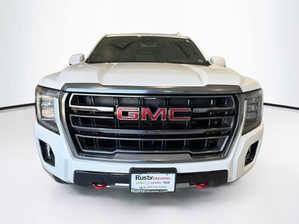 Certified. CARFAX One-Owner. Summit White 2023 GMC Yukon AT4 4WD 10-Speed Automatic with Overdrive EcoTec3 5.3L V8 Yukon AT4, 4D Sport Utility, EcoTec3 5.3L V8, 10-Speed Automatic with Overdrive, 4WD, Summit White, Black Leather, 2 Presets For Outside Rearview Mirrors, 3 Years of GMC Connected Services, 3 Years of OnStar Safety & Security, 3rd Row 60/40 Power-Folding Split-Bench Seat, 3rd row seats: split-bench, Apple CarPlay/Android Auto, Black Roof-Mounted Luggage Rack Side Rails, Bose 9-Speaker Stereo Audio System Feature, Bright Front & Rear Door Sill Plates, Dual-Pane Panoramic Power Sunroof, Front & Rear Park Assist, Front dual zone A/C, Front High-Approach Angle Fascia, Hands-Free Power Programmable Rear Liftgate, Heated & Ventilated Driver & Front Passenger Seats, Heated 2nd Row Outboard Position Seats, Heated Driver & Front Passenger Seats, Heated front seats, Heated Steering Wheel, Heavy-Duty Air Filter, Hill Descent Control, Inside Rear-View Auto-Dimming Mirror, IntelliBeam Automatic High Beam On/Off, Lane Change Alert w/Side Blind Zone Alert, Lane Keep Assist w/Lane Departure Warning, License Plate Front Mounting Package, Navigation System, Outside Heated Power-Adjustable Mirrors, Power Liftgate, Power Release 2nd Row 60/40 Split-Folding Bench Seat, Power Tilt & Telescopic Steering Column, Preferred Equipment Group 4SB, Red Horizontal-Mounted Recovery Hooks, Roof rack: rails only, Safety Alert Seat, Universal Home Remote, Ventilated front seats, Wheels: 20 x 9 6-Spoke Machined Aluminum, Wireless Charging.